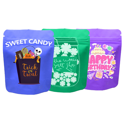 Custom Printed 3.5g Aluminized Foil Stand up Pouch Smell Proof Mylar ZipLock Bags for Food Sugar Pet Food Jelly Freezer Use